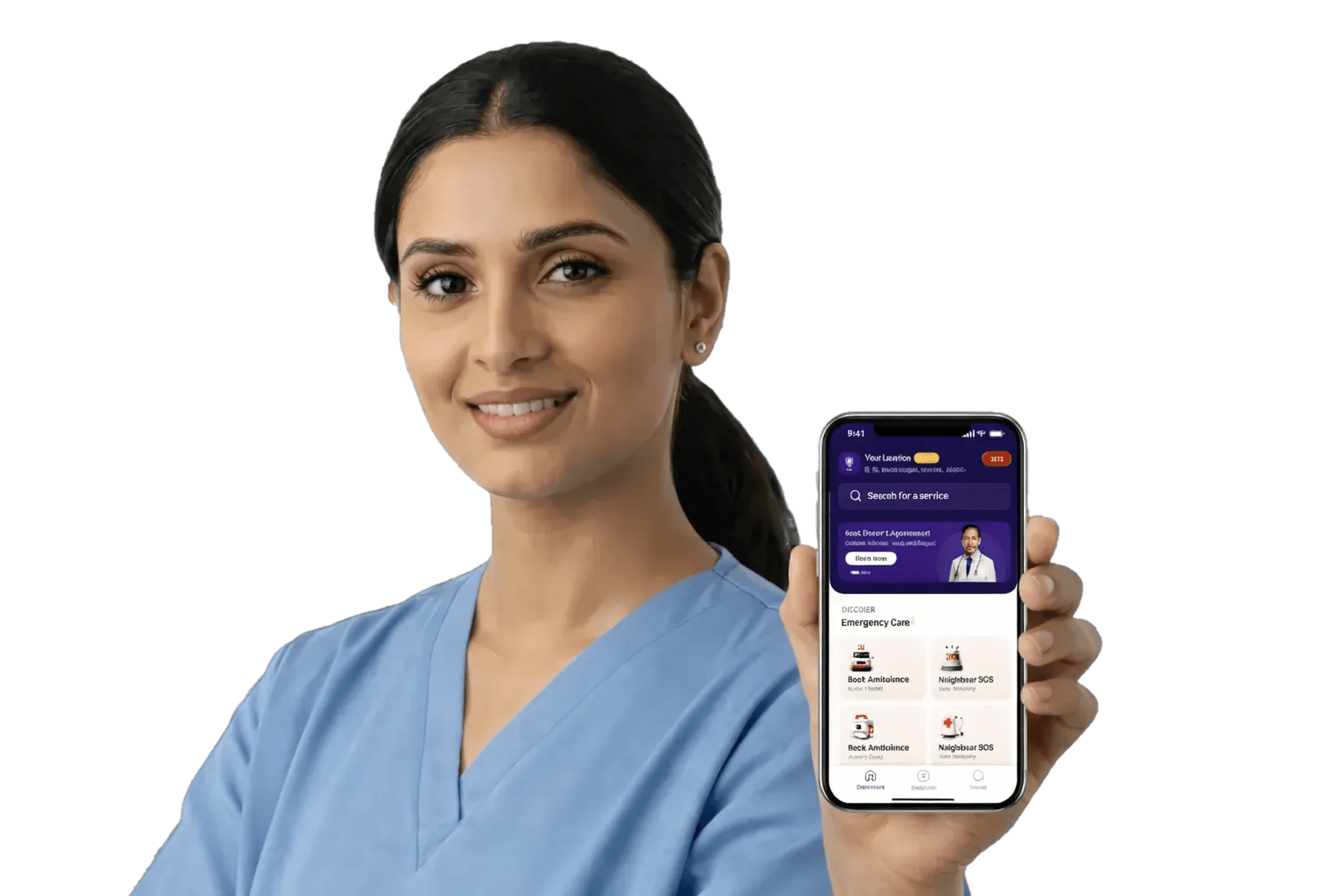24/7 emergency care and home nursing at your doorstep in under 10 minutes.