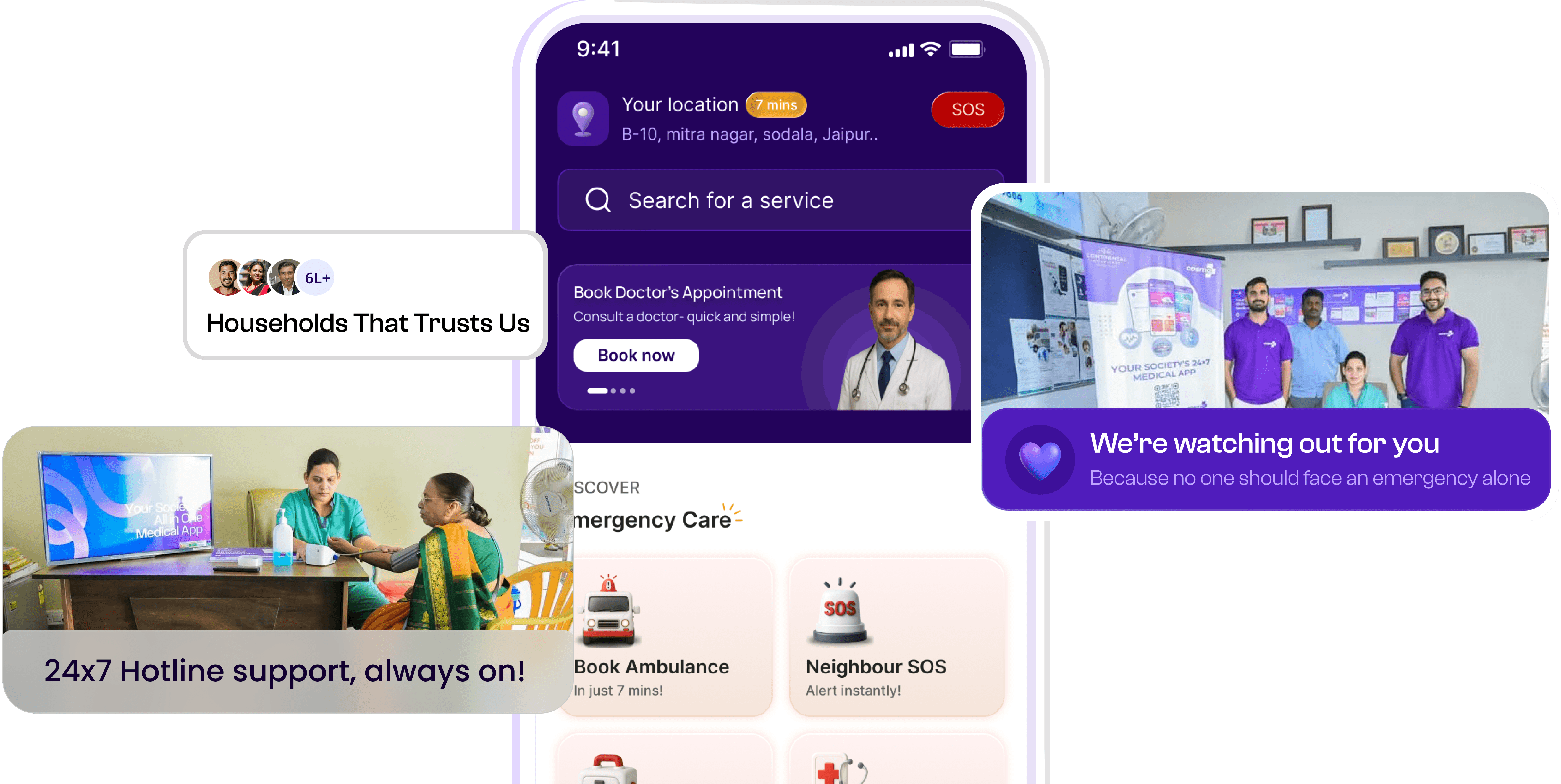 Emeregency Care • 24/7 Stationed Nurses • Instant Doctor Access • Complete Family Care